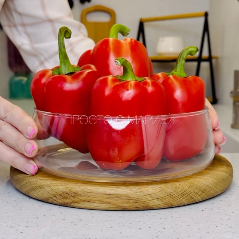 Начинаем с запекания перцев — в аэрогриле или в духовке. В обоих случаях цель одна: кожица должна подпалиться легко, а внутри сохранить сочность. Готовые перцы очищаем, удаляем семена и нарезаем полосками, чтобы они держали форму в тарелке и не утратили сок.