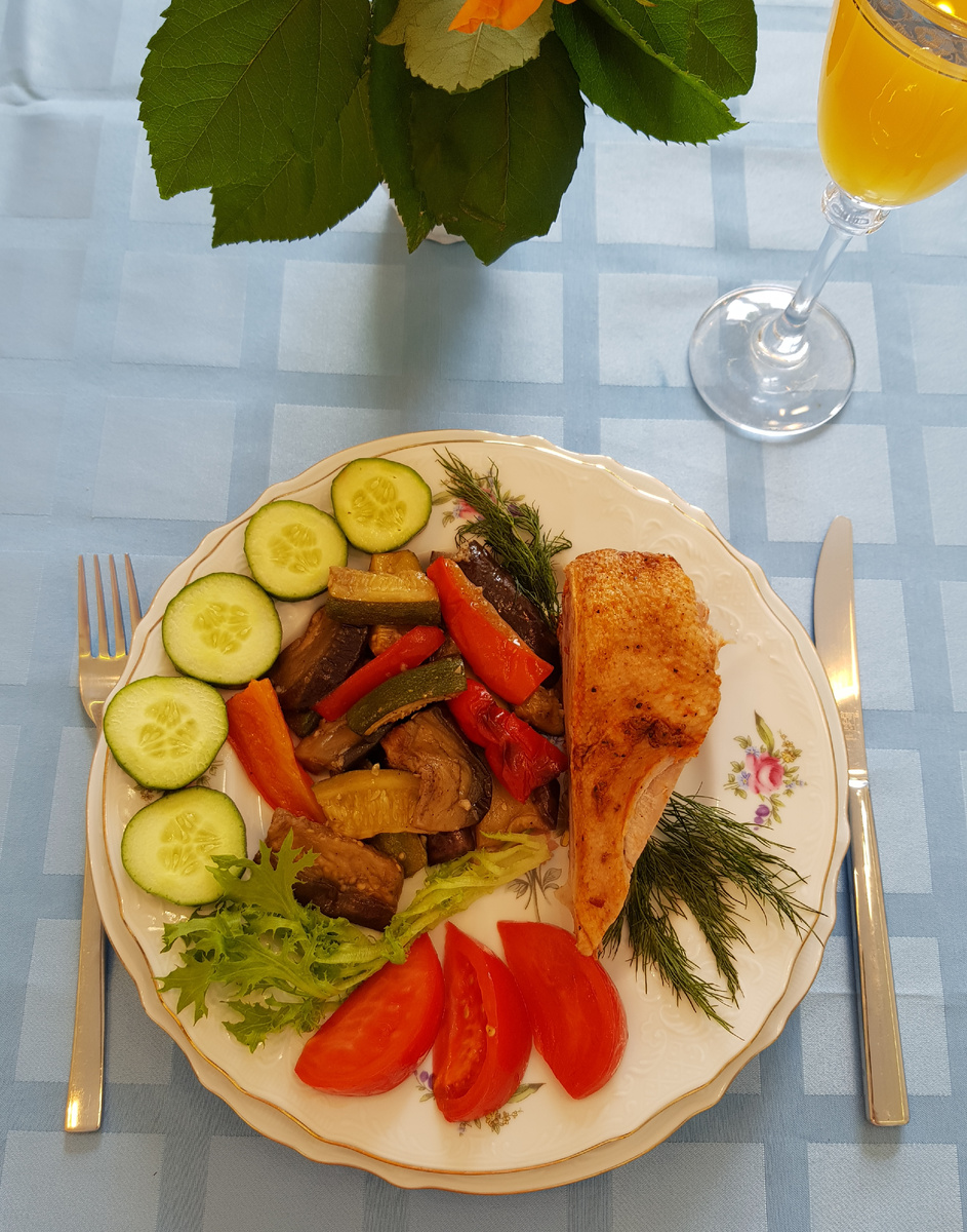 Когда овощи готовы, их нужно разложить на противень и запекать в режиме гриля в течение 30 минут при температуре 200 градусов Цельсия, не забывая переворачивать их в процессе готовки.