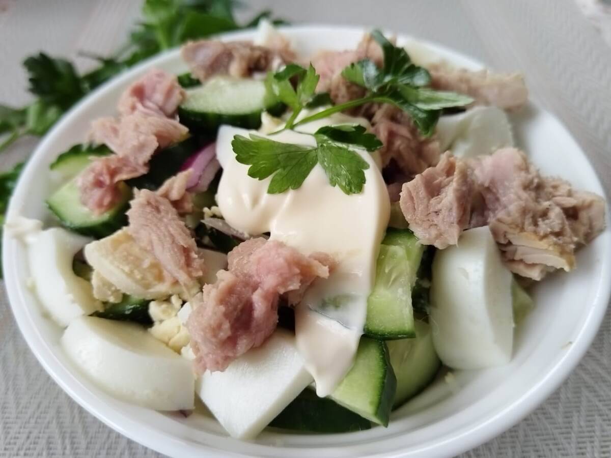 Приятного аппетита! Этот простой и питательный салат с тунцом обязательно понравится ценителям вкусной и здоровой пищи.