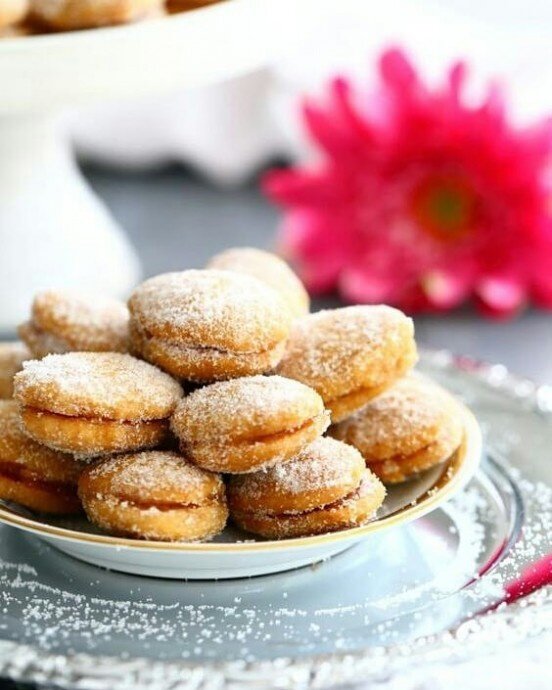После выпекания, когда печенье остынет, намазать его мармеладом и обвалять в сахаре или сахарной пудре.