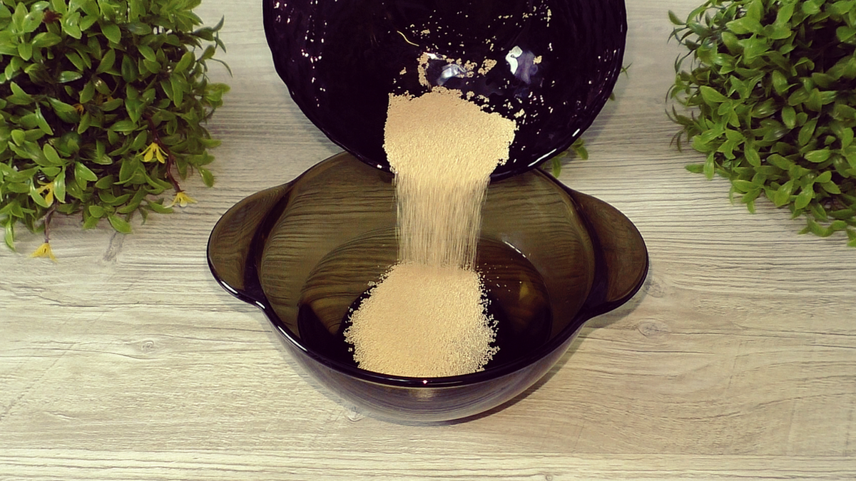 1. В тёплую воду (примерно 30 градусов) добавить дрожжи. Если используются прессованные дрожжи, соответственно, используйте 20 г.