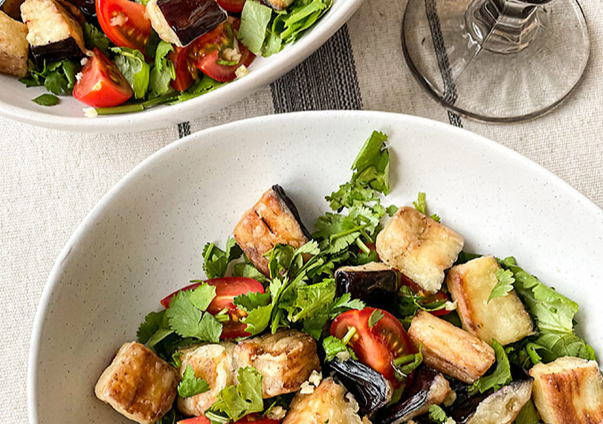 Ищете необычный и сытный салат с запеченными баклажанами? Рекомендуем вам попробовать рецепт, в котором нежные баклажаны гармонично сочетаются с хрустящими чесночными сухариками, свежими овощами и пикантной заправкой из тахини. Это блюдо прекрасно подойдет как для вечернего ужина, так и для праздничного стола, сообщает Big Taste.