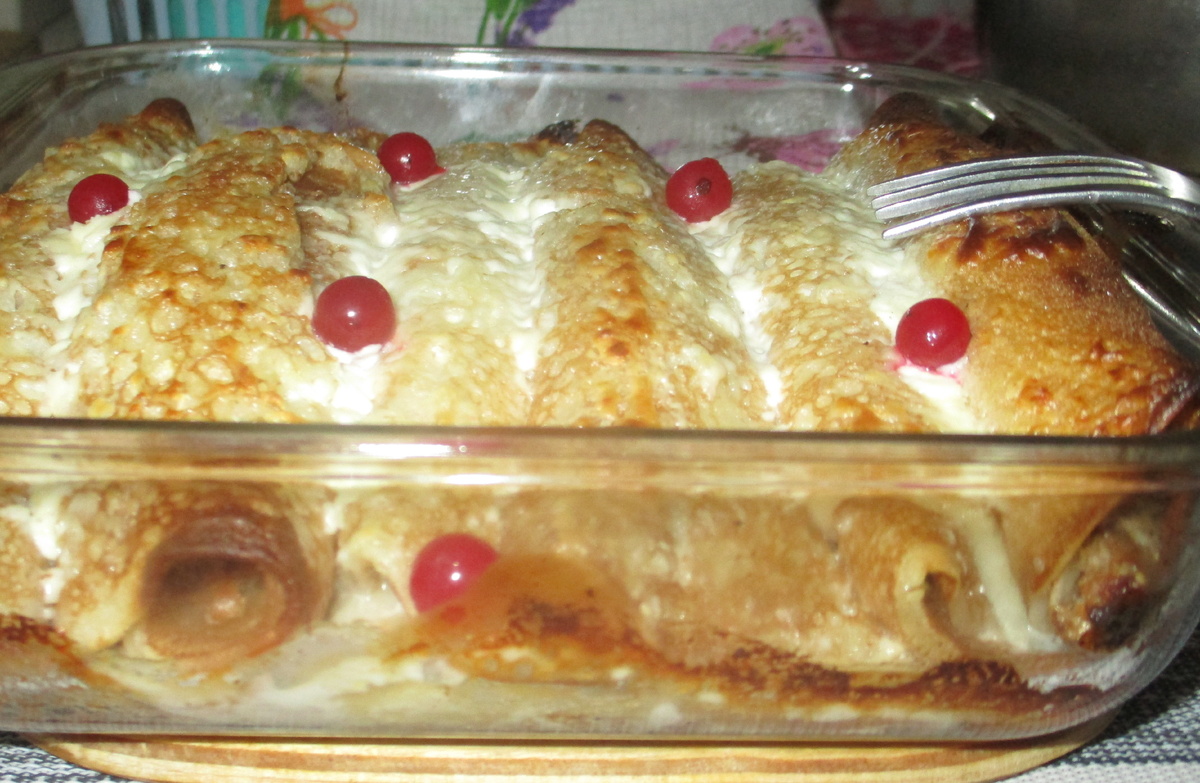 Получившиеся блины с начинкой отличаются мягкостью и нежностью, что делает их идеальным десертом для всей семьи. Приятного аппетита!