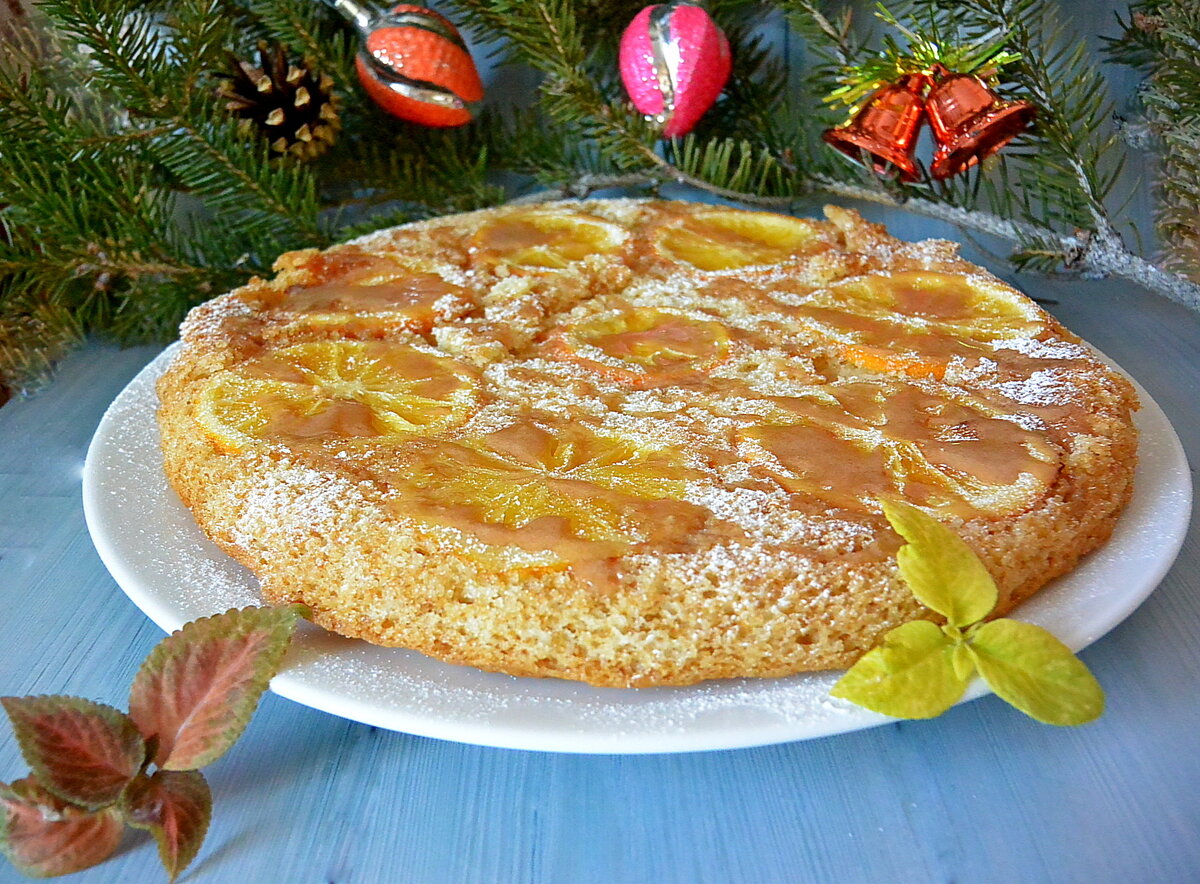 Загляните в мир уникальных вкусов с нашим рецептом апельсинового пирога, который станет настоящим украшением любого новогоднего стола. Этот удивительный десерт покрыт глазурью из соленой карамели и обильно сверху декорирован кусочками апельсина. Скоро наступят праздники, и такой пирог непременно произведет впечатление на ваших гостей! Время приготовления составляет примерно 1 час.