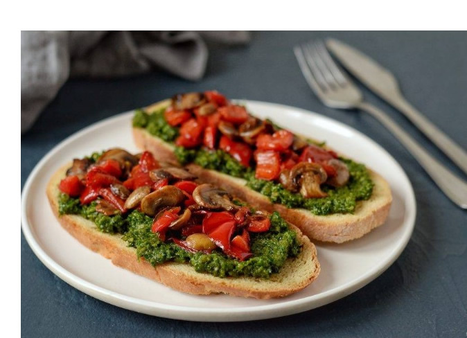 Брускетта с песто и овощами на гриле