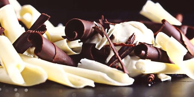 - Можно добавить краситель в белый шоколад для создания цветных завитков.