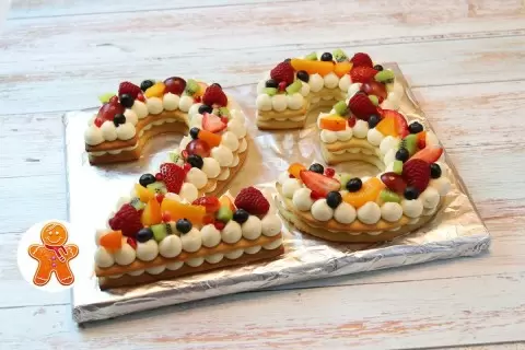 Основа рецепта — лёгкие бисквитные коржи и воздухистый крем, который держит форму и не расходится при нарезке. Работать с тестом удобно: тесто раскатывают на бумаге, режут нужную цифру, затем выпекают до золотистого цвета. Важная деталь — не перестаривать тесто: чем бережнее обращение, тем хрупче коржи.