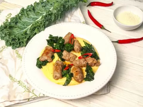 Итальянская полента: быстрое и вкусное блюдо с колбасками и кейлом