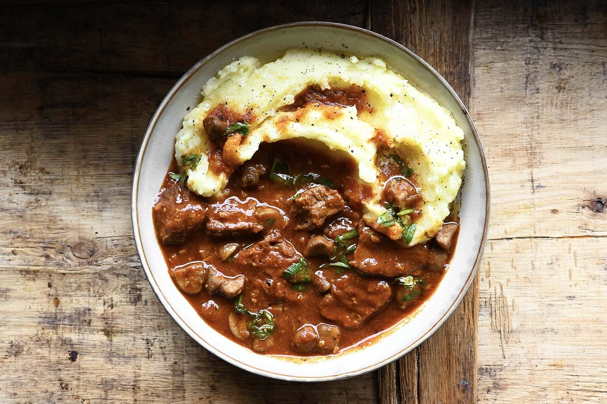Готовится все просто: обжарить мясо, затем добавить лук, муку и томатную пасту, после чего много томить на медленном огне.