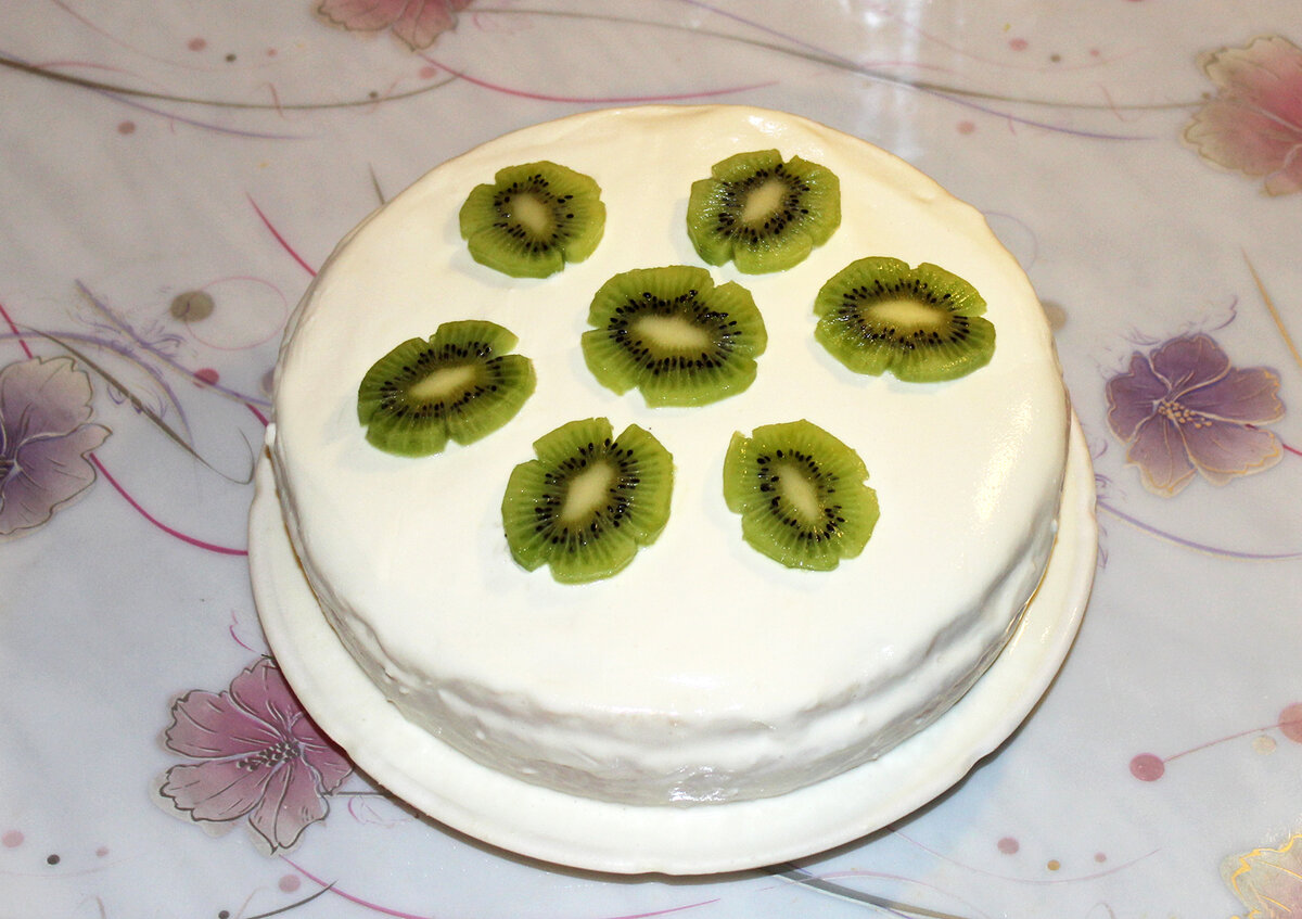 Для крема все ингредиенты нужно взбить в блендере. Наносим на торт и оставляем настаиваться в холодильнике. Через несколько часов он готов к угощению, и каждый кусочек подарит массу удовольствия.