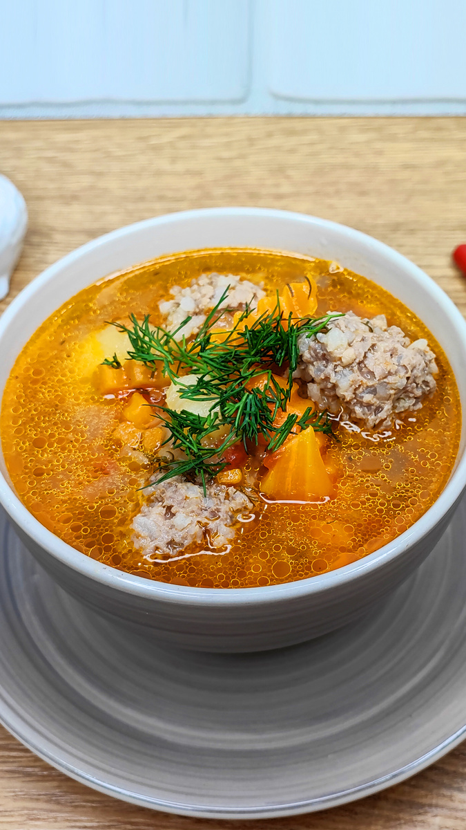Шурпа предлагает гармоничное сочетание первых и вторых блюд: насыщенный бульон, мягкие овощи и сочные тефтели создадут идеальный обед, который понравится даже самым привередливым едокам.