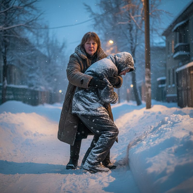 Подойдя ближе, женщина осознала: это человек. Замерзший, обледеневший, он был на грани жизни и смерти. Ольга, забыв о своих заботах, опустилась на колени и начала отогревать его, пытаясь спасти. Это было не просто спасение — это была борьба за человечность.