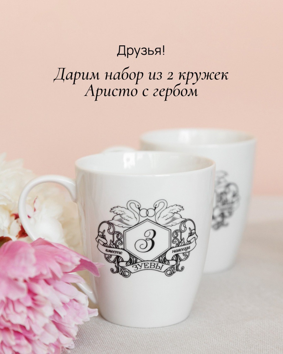 На платформе проводим увлекательный конкурс, где 10 счастливчиков смогут получить пару изысканных фарфоровых кружек Аристо, украшенных элегантным гербом.