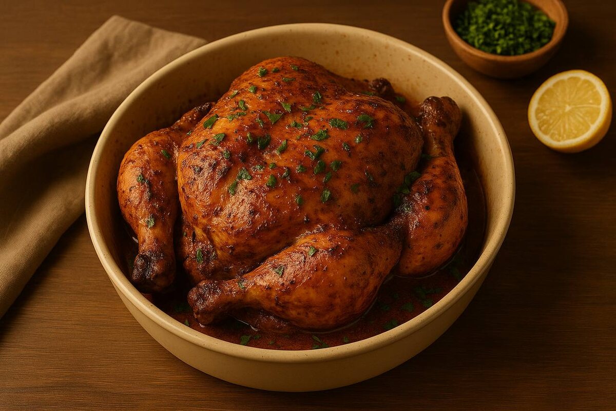 После маринования в течение минимум 30 минут курицу помещают в форму и запекают при температуре 180–190°C около 40–50 минут. Для румяной корочки стоит снять фольгу на пару минут перед завершением процесса.