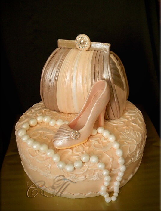 Недавно был приготовлен торт в форме туфельки для подруги, с которой много общего. Она как-то заметила: "Мы с тобой два сапога - пара". Я же с улыбкой ответила: "Нет, мы туфельки!" В итоге, торт стал забавным намеком. Для него использовался медовый корж, а шоколадный торт с орехами и черносливом в коньяке украсил ее праздничное чаепитие.