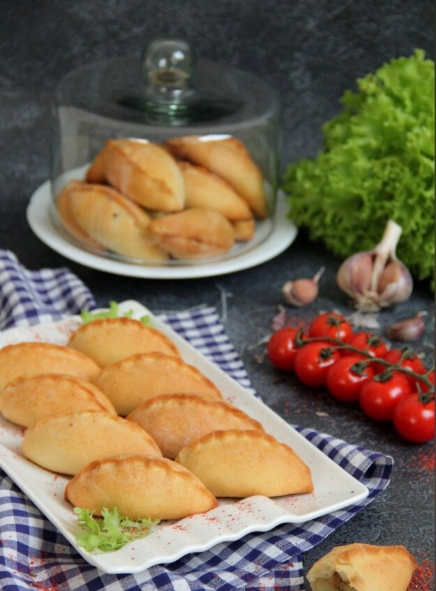 6. Выложите пирожки на противень, застеленный тефлоновым ковриком. Выпекайте в предварительно разогретой духовке при температуре 200°C около 25 минут, до золотистой корочки.
