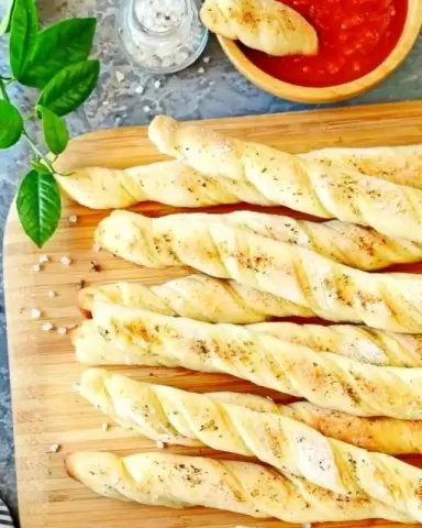 10. Подавайте тёплыми, дополнив любимым соусом или расплавленным сыром. Хлебные палочки порадуют как самостоятельное блюдо, так и в сочетании с другими угощениями.