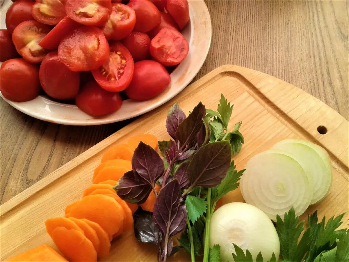- Помидоры – необходимо выбрать спелые, крепкие плоды, которые не будут терять форму при переработке;