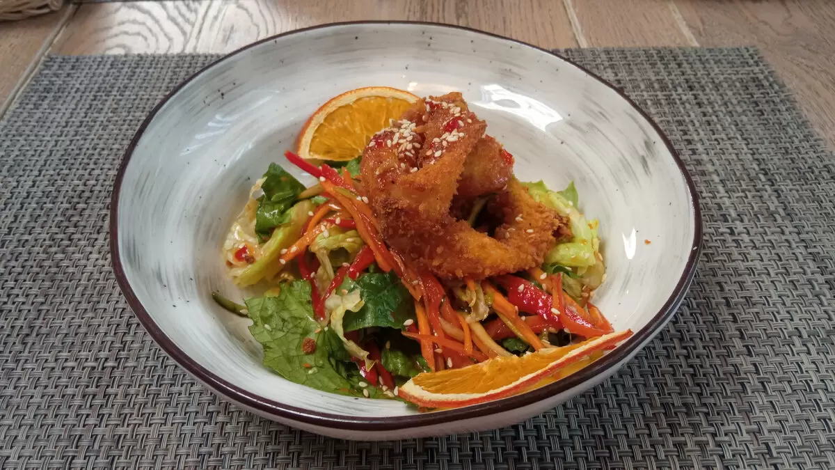 Подавайте салат сразу же, как только кальмары приготовлены — они должны быть горячими и хрустящими. Этот салат — отличный способ удивить гостей и порадовать себя!