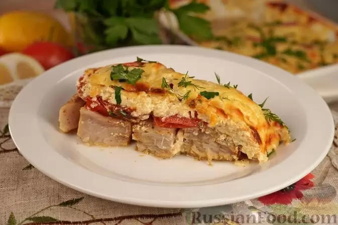 - Треска в сырной корочке с помидорами. Это легкое и элегантное блюдо порадует любителей морепродуктов. Нежное филе рыбы, запечённое с томатами и мягким сыром, превратит обычный ужин в кулинарное удовольствие.