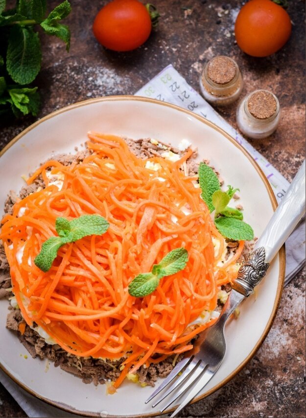 Салат с печенью и корейской морковью: легкое и вкусное лакомство
