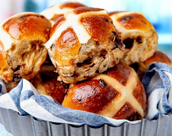 Горячие пасхальные булочки с крестиком, известные как Hot Cross Buns, — это нежные дрожжевые изделия с добавлением пряностей и характерной корочкой, украшенной крестом. Эти булочки традиционно пекут в Великобритании уже более тысячи лет, особенно накануне Страстной пятницы. В отличие от своих сладких американских аналогов, классические булочки немного менее сладкие и оформляются по старинной технологии.